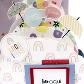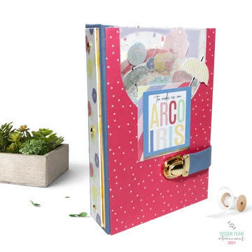 En esta ocasión les tengo este mini álbum que realicé para mi presentaciòn del DT internacional de Crafty Things Deco con la colección digital arcoiris y la verdad es que está súper bello simulando el arcoris en curvas desde su portada, la portada con ventana es total inspiración de la experta Bea Valint que en invierno compartió un álbum con una ventana en V.